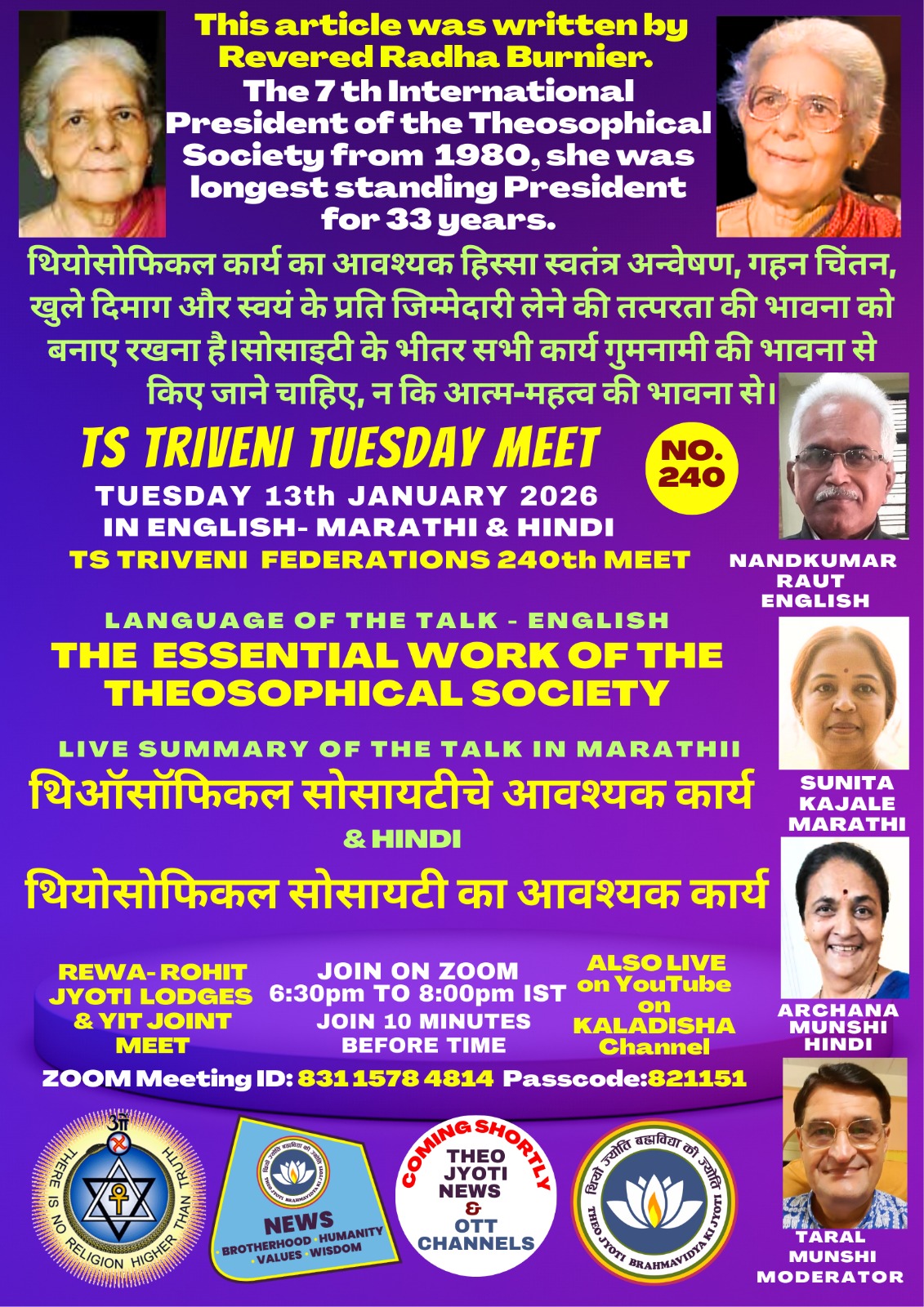 TODAY FROM ADYAR-on 6th JANUARY 2026, TUESDAY- JOIN ON ZOOM AT 6:30 PM. TO KNOW ABOUT: