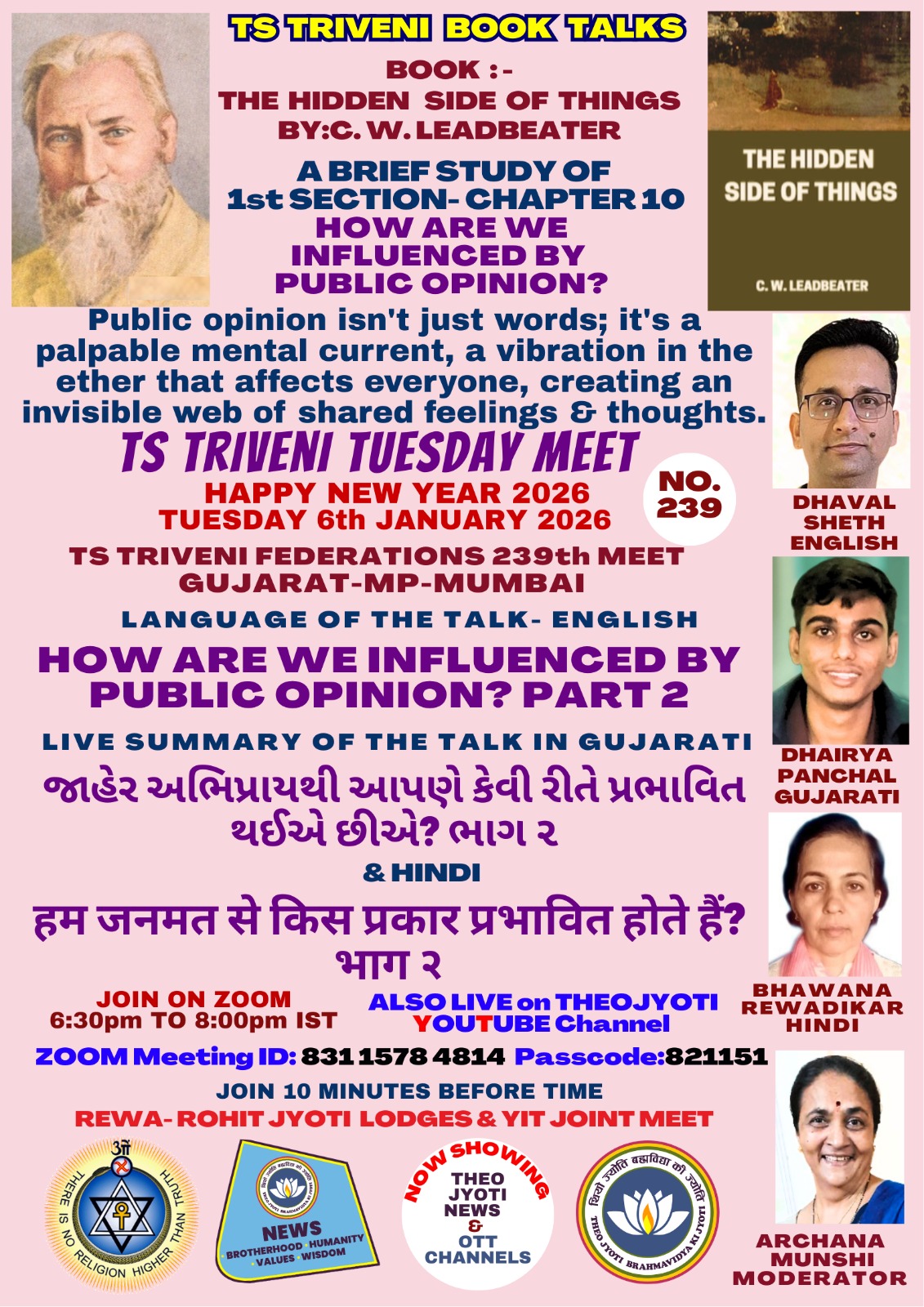 TODAY FROM ADYAR-on 6th JANUARY 2026, TUESDAY- JOIN ON ZOOM AT 6:30 PM. TO KNOW ABOUT: